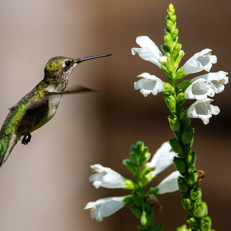• Physostegia virginiana ‘Crystal Peak White’ (Obedient Plant) is an award winning native cultivar selected for its compact habit and long bloom time