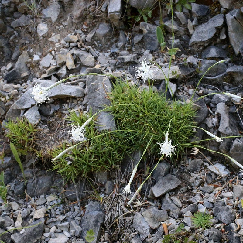 Dianthus petraeus ssp. noeanus (Rock Pink) is right at home in a rock garden or low-maintenance xeriscape. Plant it in a sunny location with average to lean well-drained soil. The delicate, fragrant flowers are nice as cut flowers too. Native to Central Europe from Romania to Bulgaria, Dianthus petraeus can be found growing on calcareous mountain slopes or in dry highland forest edges.