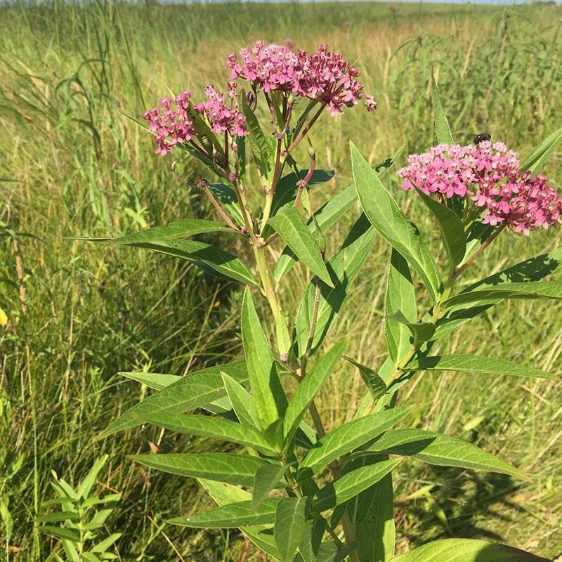 Asclepias incarnata ‘Rose’ (Swamp Milkweed) is a showy pink blooming Asclepias species that is a food plant for Monarch butterfly caterpillars and a nectar source for adult butterflies. Also called Swamp Milkweed, this milkweed actually grows well in both moderately moist and wet soils. This perennial milkweed is also an excellent choice for rain gardens.